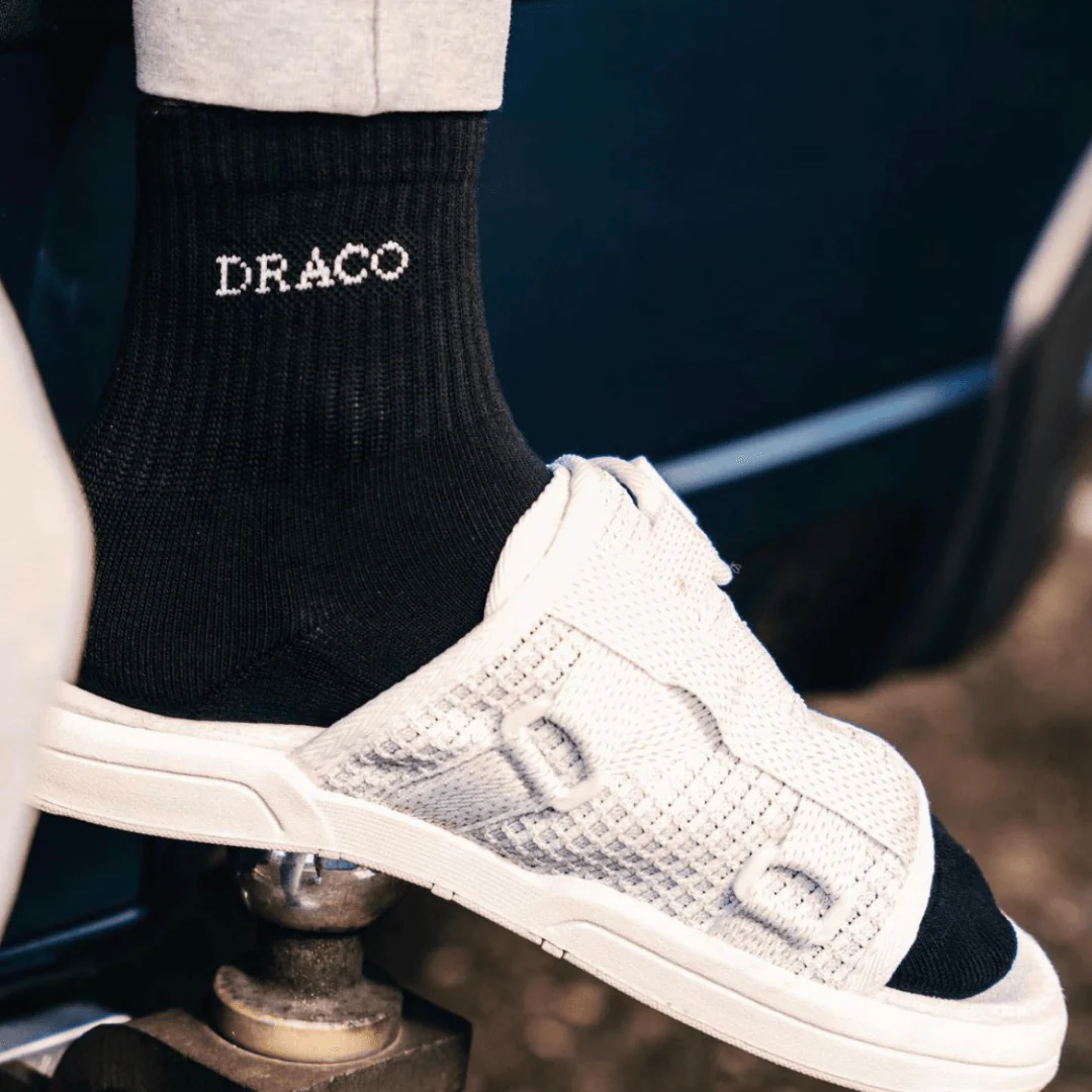 Draco socks were designed for comfort and breathability. Made to give you that extra cushion when sliding into your Draco Slides without having your feet sweat and gasp for air - An absolute must add-on to go along with your pair of DracoSlides.